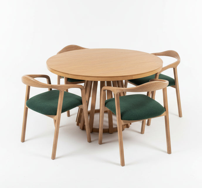 Resistencia y Durabilidad: Fabricado con roble de primera calidad, este comedor está diseñado para perdurar en el tiempo, manteniendo su esplendor y funcionalidad incluso con el uso diario.